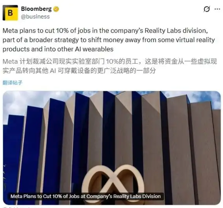 元宇宙转 AI:Meta 将裁员数百人,Reality Labs 约10%员工受影响
